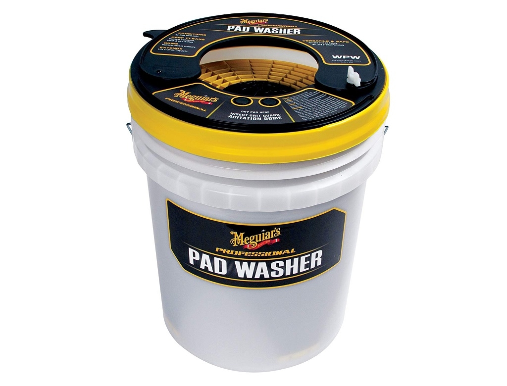 - Place buffing pad inside Meguiar’s Pad Washer (WPW), close splash lid.