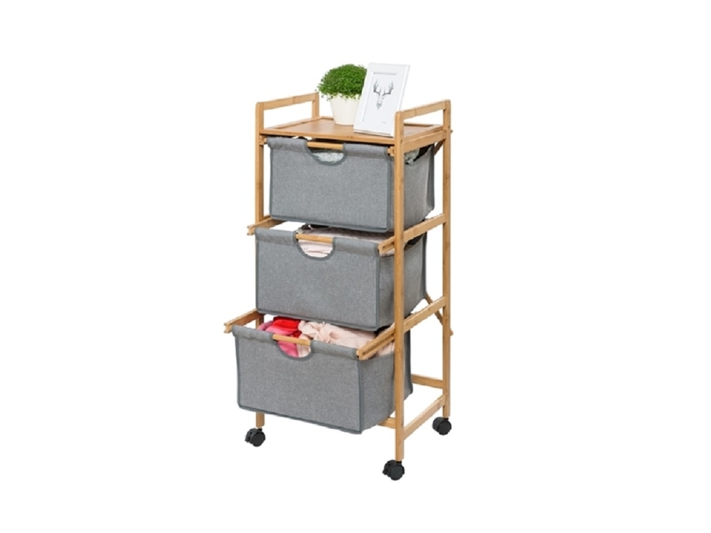 Specifications:Bahari bathroom furniture, WENKO. High quality and aesthetic bamboo trolley with 1 shelf and 3 drawers. It has 4 wheels, 2 with brake.