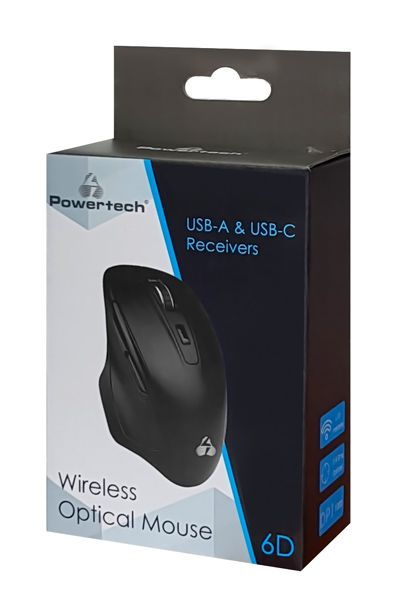 POWERTECH ασύρματο ποντίκι PT-853, 1000DPI, Nano USB-A & USB-C, μαύρο