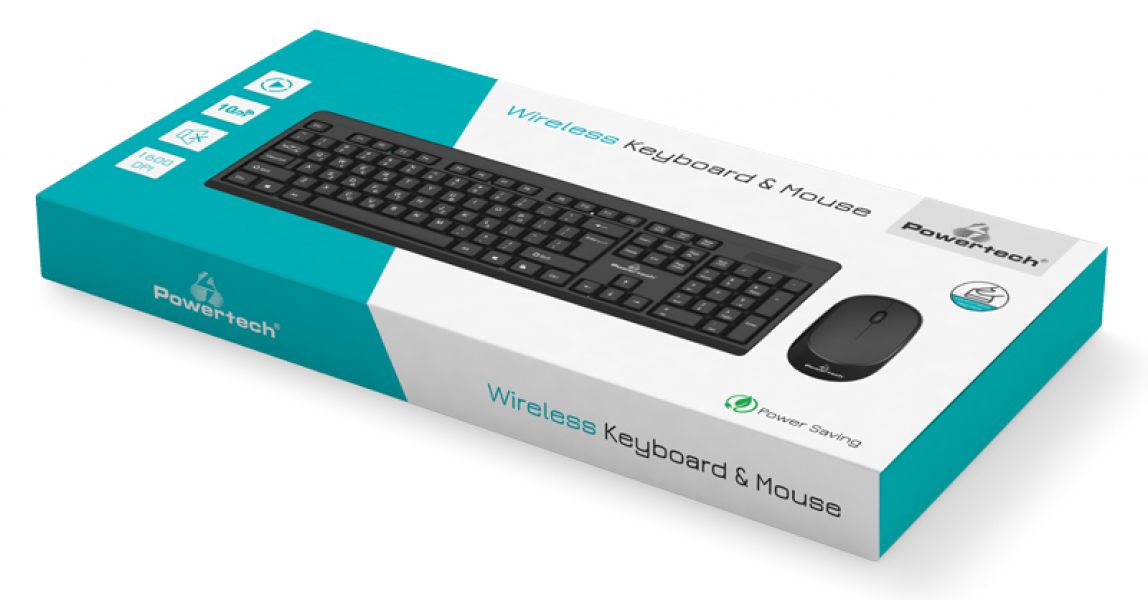 POWERTECH set ποντίκι & πληκτρολόγιο PT-957, ασύρματο, 1600dpi, μαύρο