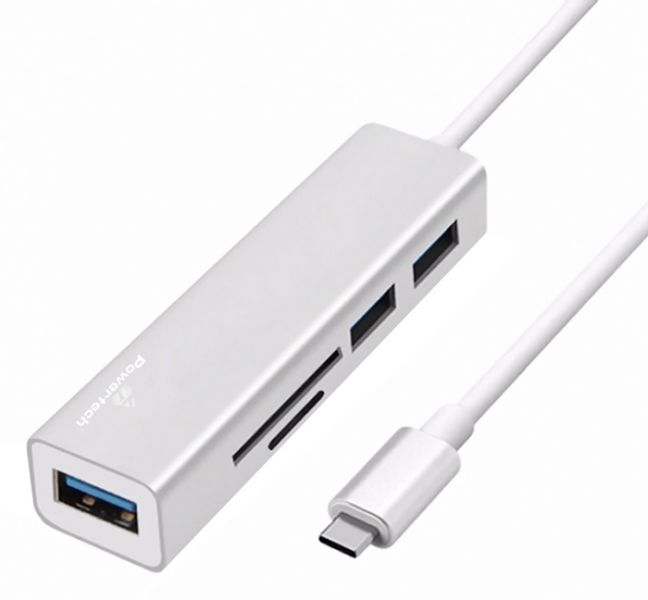 POWERTECH USB-C hub PT-926, 3x USB, SD/Micro SD, ασημί