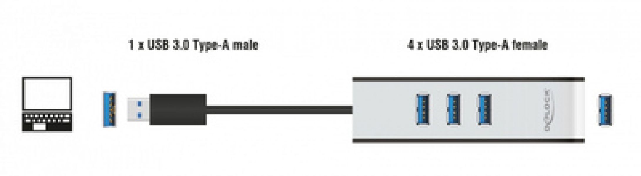 DELOCK USB hub 62534, 4x USB, 5Gbps, 30cm, μαύρο-γκρι - Περιφερειακά PC