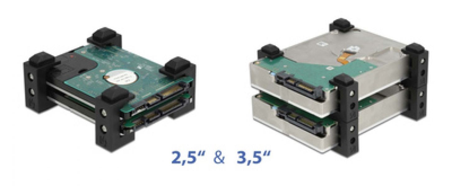 Αυτή η βάση της Delock είναι ιδανική για την ασφαλή τοποθέτηση των σκληρών δίσκων. Δύο σκληροί δίσκοι των 2.5" ή ένας των 3.5" μπορούν να τοποθετηθούν σε τέσσερις βάσεις.