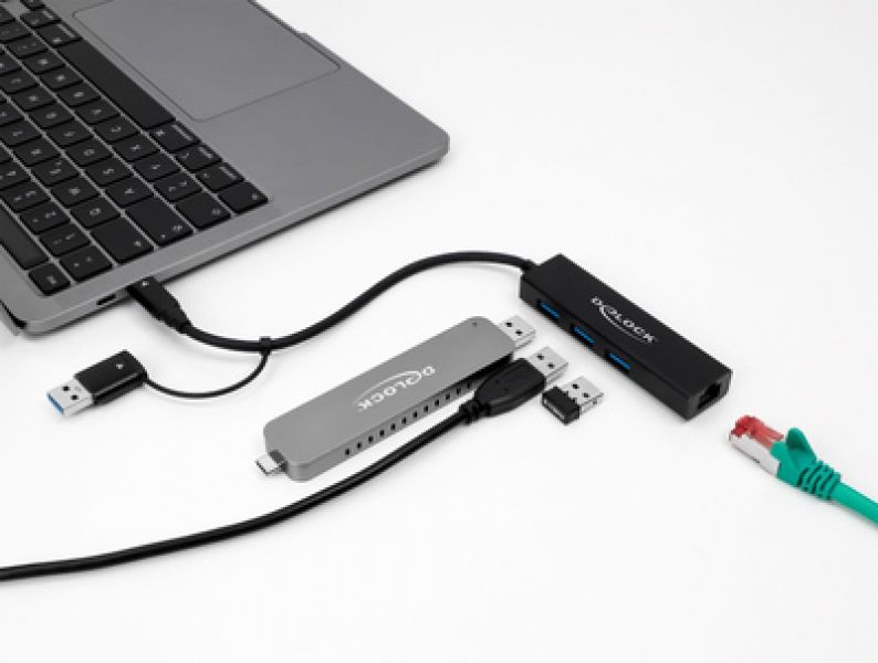 Το docking station της Delock μπορεί να συνδεθεί με τον υπολογιστή σας μέσω θύρας USB ή USB Type-C και να επεκτείνει τις θύρες του με 3x USB 3.2 Gen 1 και 1x RJ45 θύρες.