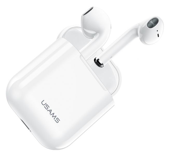 USAMS earphones US-YA001 με θήκη φόρτισης, True Wireless, λευκά