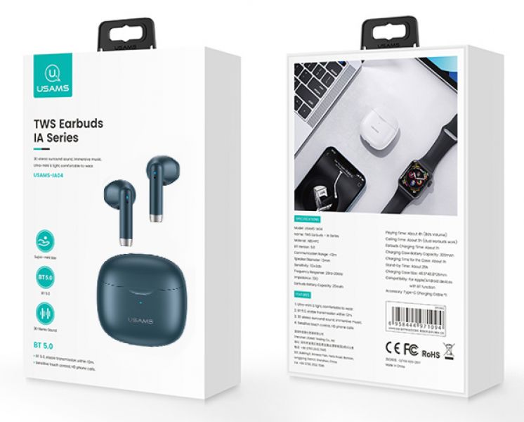 USAMS earphones IA04 με θήκη φόρτισης, True Wireless, μπλε
