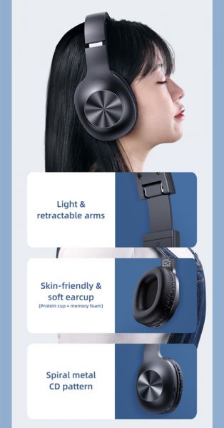 USAMS headphones YX05, wireless & wired, BT 5.0, μπαταρία 1200mAh, μαύρα