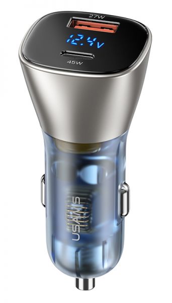 USAMS φορτιστής αυτοκινήτου CC155 με οθόνη, USB & USB-C, 72W, μπλε