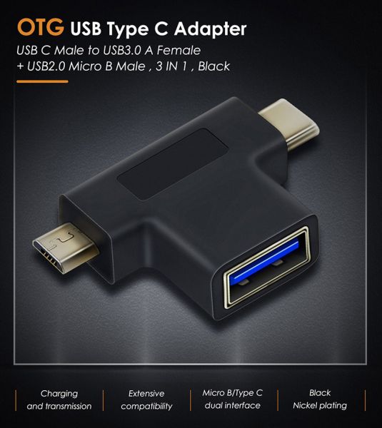 CABLETIME αντάπτορας USB 3.0 σε USB-C & Micro USB C160, μαύρος