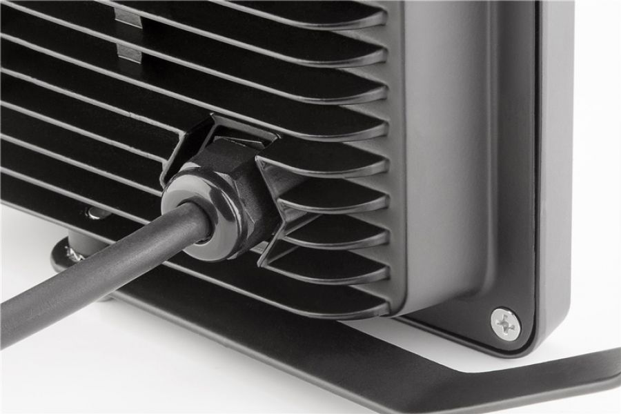 Εξωτερικός προβολέας LED με βάση και λαβή μετακίνησης. Η κατασκευή του είναι ανθεκτική σε κραδασμούς και υποστηρίζει στεγανοποίηση επιπέδου IP65 που τον καθιστά ιδανικό για χρήση σε εξωτερικούς χώρους.