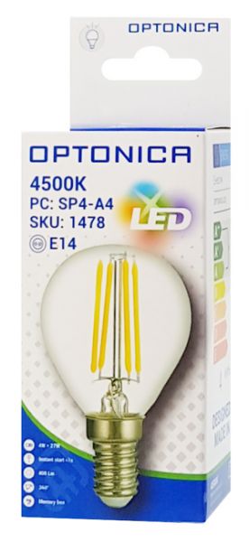 OPTONICA LED λάμπα G45 Filament 1478, 4W, 4500K, E14, 400lm