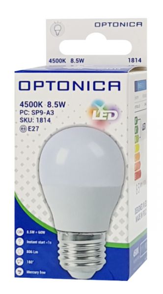 OPTONICA LED λάμπα G45 1814, 8.5W, 4500K, E27, 806lm