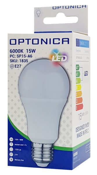 OPTONICA LED λάμπα A60 1835, 15W, 6000K, E27, 1320lm