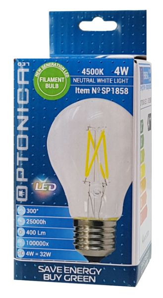 OPTONICA LED λάμπα A60 Filament 1858, 4W, 4500K, E27, 400lm