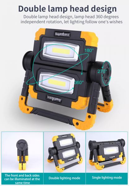 Ανθεκτικός προβολέας βιομηχανικού τύπου ο οποίος διαθέτει 2x 10W COB φώτα. Η κατασκευή του εκτός από στιβαρή είναι και έξυπνα σχεδιασμένη με αποτέλεσμα τόσο τα δύο φώτα όσο και οι δύο βάσεις να είναι πλήρως ρυθμιζόμενες ώστε να επιτυγχάνετε ιδανικό φωτισμό στον χώρο σας! Επίσης, οι βάσεις εκτός από ρυθμιζόμενο σταντ λειτουργούν και ως χειρολαβή. Διαθέτει 3 modes λειτουργίας: το ένα φως, το δεύτερο φως ή και τα 2 μαζί.
