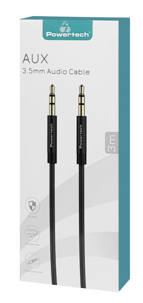POWERTECH καλώδιο 3.5mm prime PTR-0088, AUX, 3 pin, copper, 3m, μαύρο