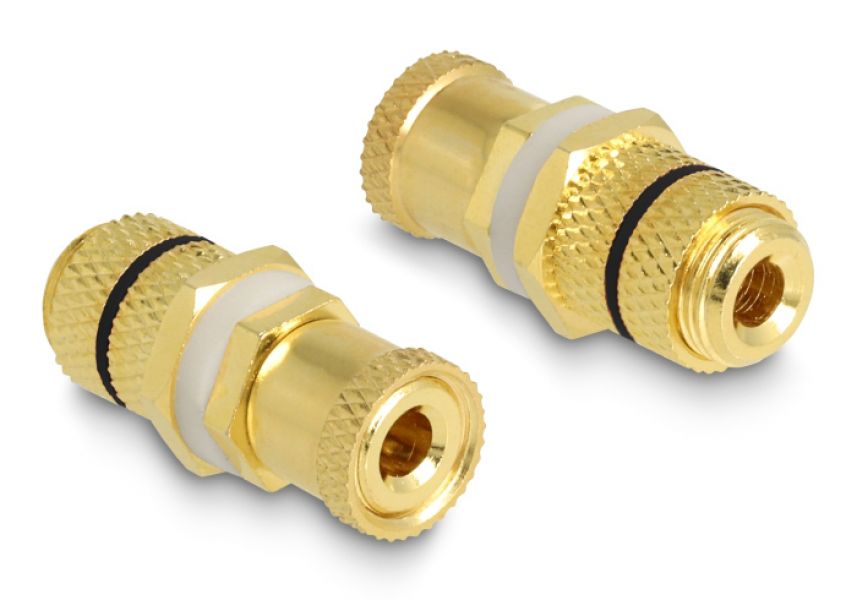 Αυτός ο αντάπτορας της Delock παρέχει δύο binding posts. Είναι κατάλληλος για τη σύνδεση καλωδίων ήχου.
