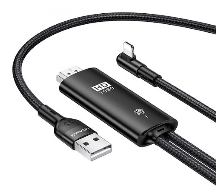 USAMS καλώδιο Lightning σε HDMI U53, με USB τροφοδοσία, 2m, μαύρο