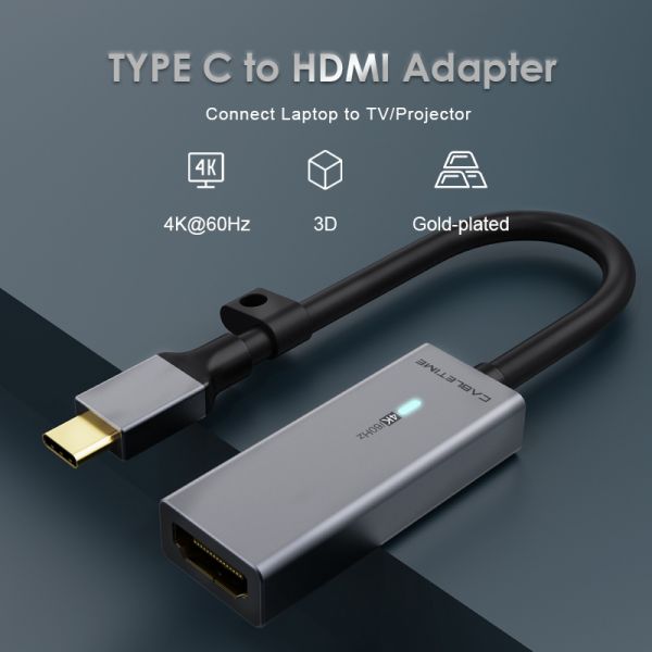 CABLETIME καλώδιο USB-C σε HDMI C160, με LED, Ring, 4K, 0.15m, μαύρο