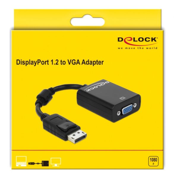 DELOCK αντάπτορας DisplayPort 1.2 σε VGA 61848, 1080p, 12cm, μαύρος