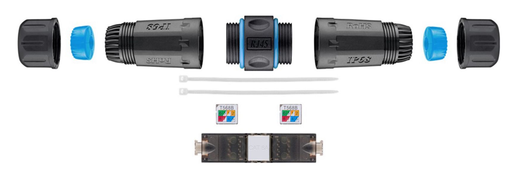 Αδιάβροχος σύνδεσμος καλωδίου RJ45 Cat 6A, ιδανικός για συνδέσεις ethernet σε εξωτερικούς χώρους. Προσφέρει αδιαβροχοποίηση επιπέδου IP68, προστατεύοντας την συνδεσμολογία από σκόνη και νερό. Εγκαθίσταται εύκολα και γρήγορα και είναι συμβατό με καλώδια διαμέτρου 5-7.5mm.