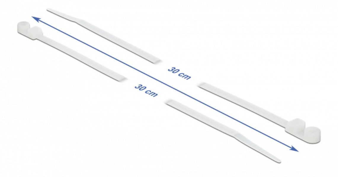 DELOCK Δεματικά καλωδίων 18946 με οπή στερέωσης, 300x4.8mm, λευκά, 10τμχ
