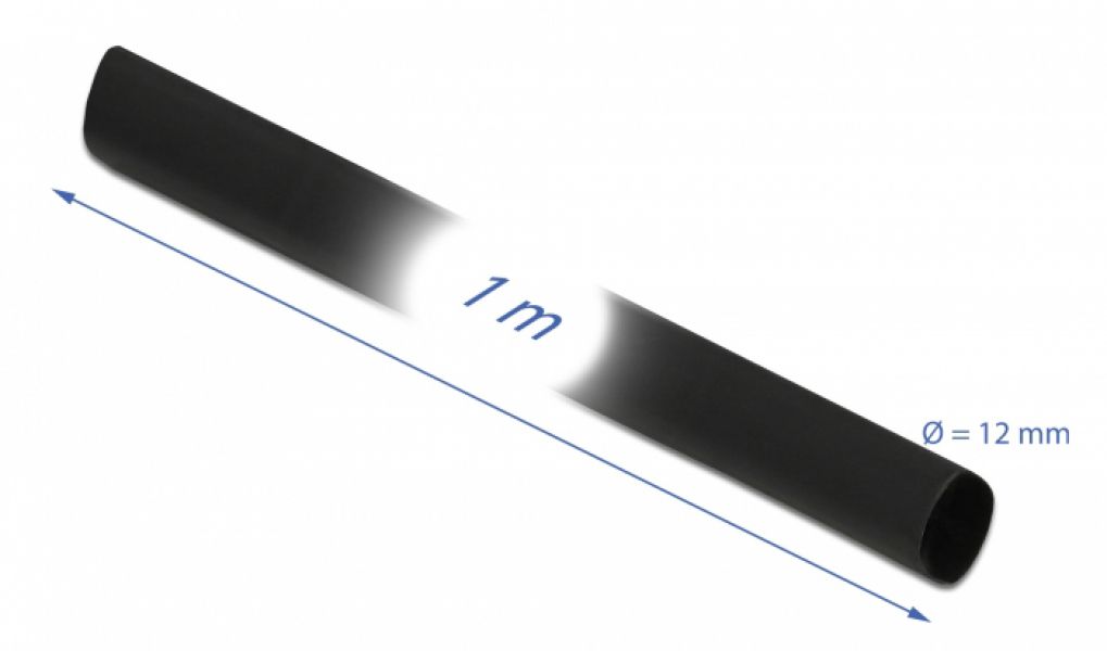 DELOCK Θερμοσυστελλόμενο μονωτικό για καλώδια 20659, 1mx12mm, 4:1 μαύρο