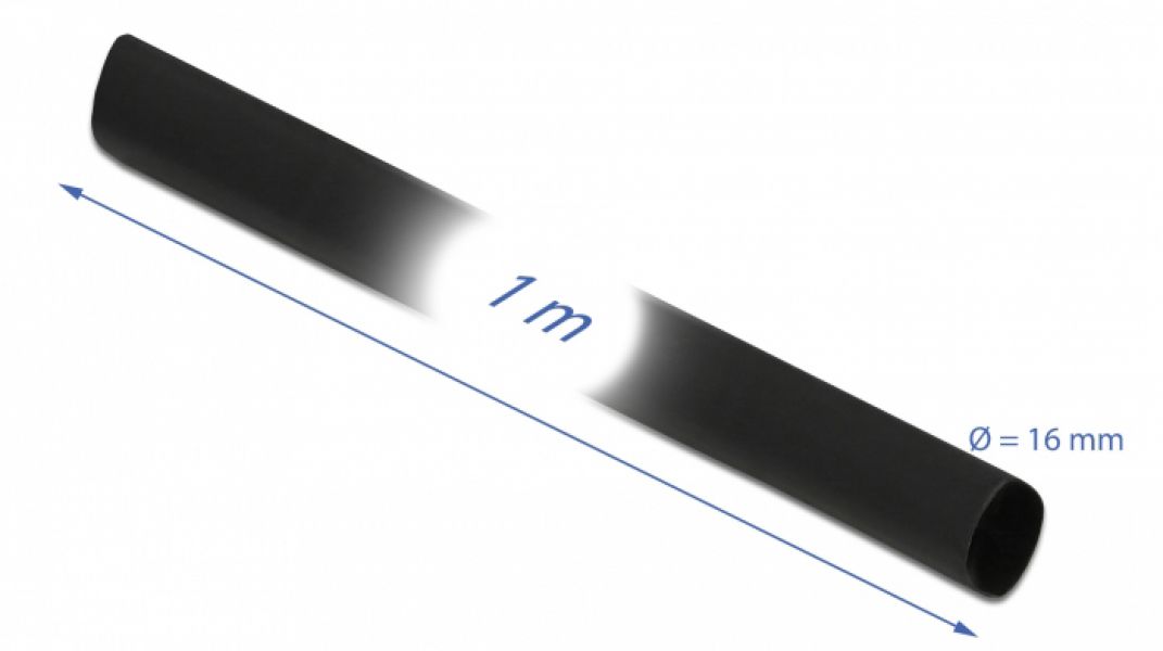 DELOCK Θερμοσυστελλόμενο μονωτικό για καλώδια 20661, 1mx16mm, 4:1 μαύρο