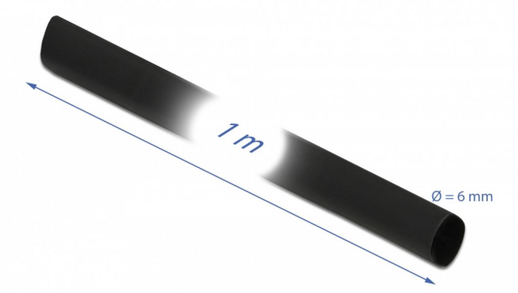 DELOCK Θερμοσυστελλόμενο μονωτικό για καλώδια 19999, 1mx6mm, 4:1 μαύρο