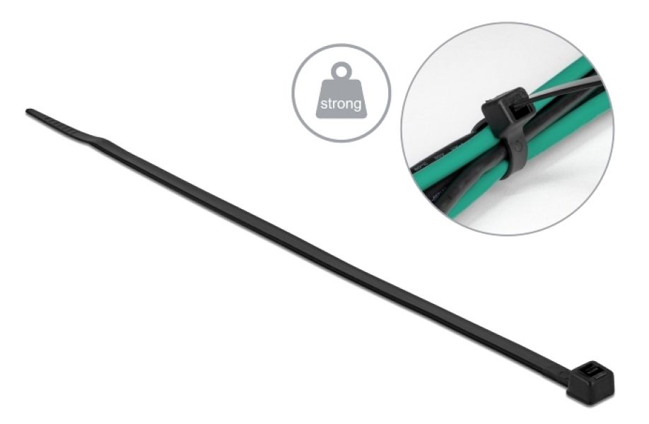 Δεματικά καλωδίων της Delock με αυτόματο μηχανισμό κλεισίματος, ιδιαίτερα υψηλής αντοχής με αντοχή σε εφελκυσμό έως 34 kg.