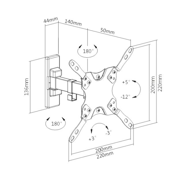 Ρύθμιση επιπέδου: +3° ~ -3°