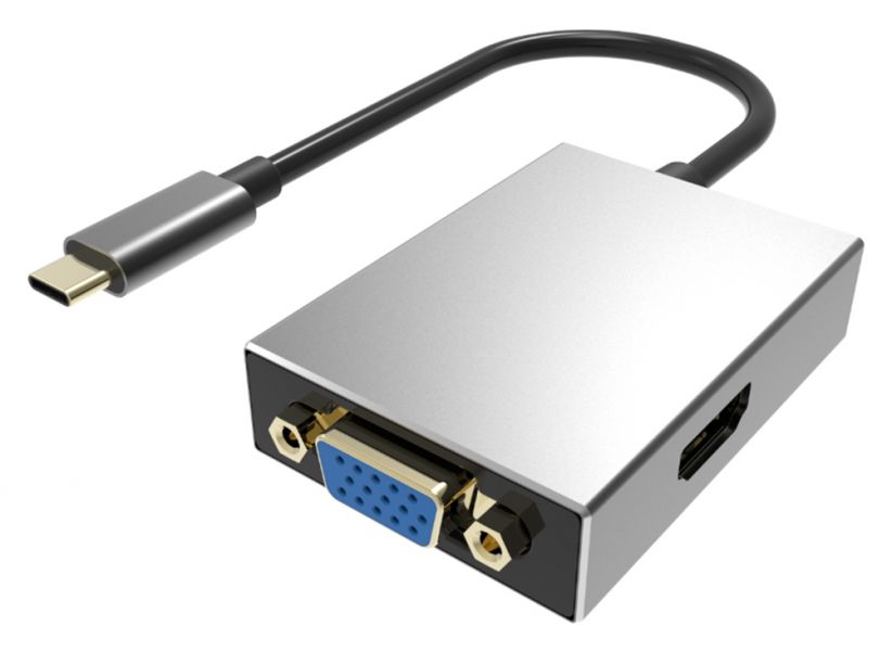 POWERTECH αντάπτορας Type-C σε VGA/HDMI PTH-050, με USB 3.0, γκρι - Cables - Adapters