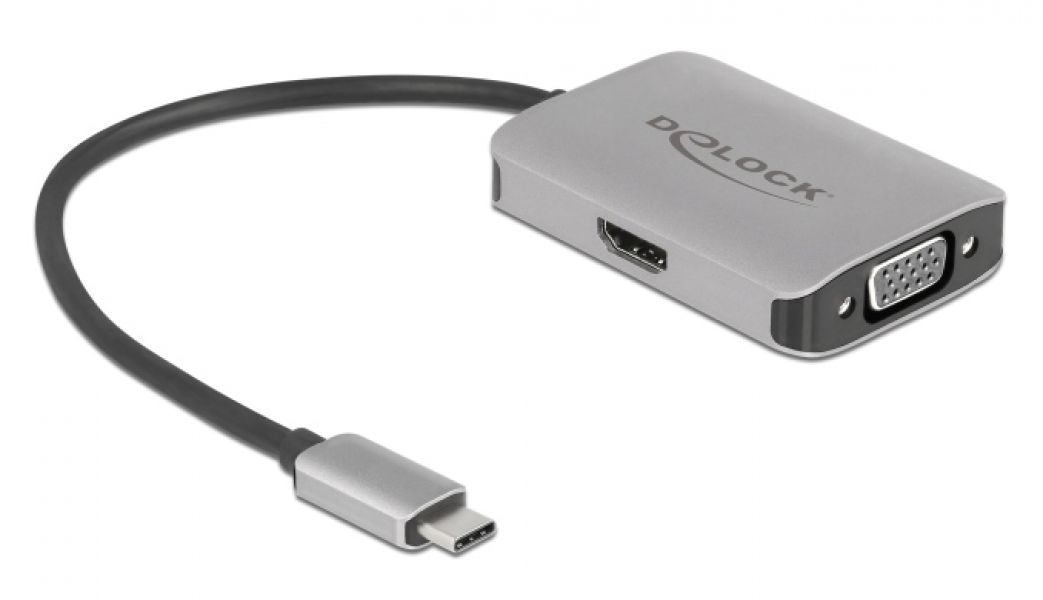 DELOCK αντάπτορας USB Type-C σε HDMI + VGA 87776, 4K, HDR, 20cm, ασημί