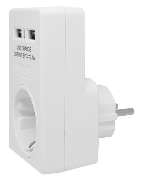 POWERTECH Αντάπτορας ρεύματος schuko PT-767, 2x USB, λευκός