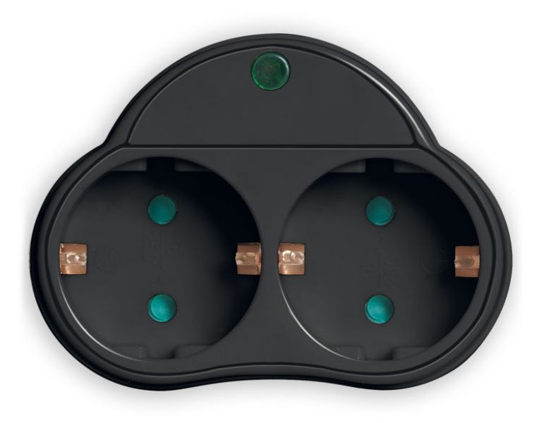 Αντάπτορας ρεύματος Powertech 2 θέσεων schuko, με μηχανισμό ασφαλείας για παιδιά και προστασία υπέρτασης.