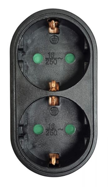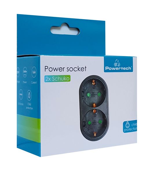 POWERTECH αντάπτορας ρεύματος PT-821, 2x schuko, 250V 16A, μαύρος