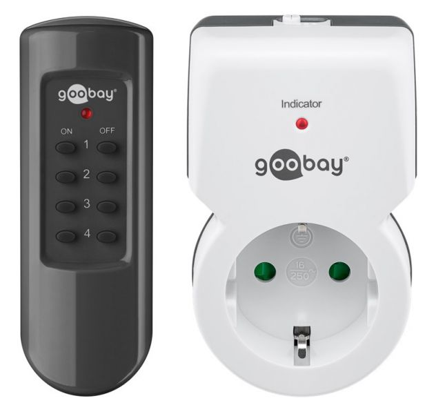 Σετ ραδιοελεγχόμενος αντάπτορας ρεύματος της Goobay, κατάλληλος για πρίζες σε εσωτερικούς χώρους που η πρόσβαση τους είναι δύσκολη.