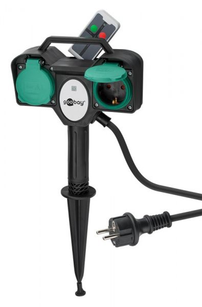 Καρφωτός αντάπτορας ρεύματος της Goobay, κατάλληλος για χρήση σε εξωτερικούς χώρους, όπως κήπους.