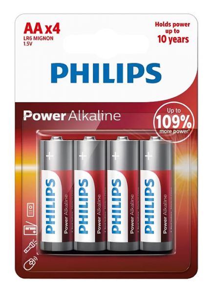PHILIPS Power αλκαλικές μπαταρίες LR6P4B/10, AA LR6 1.5V, 4τμχ