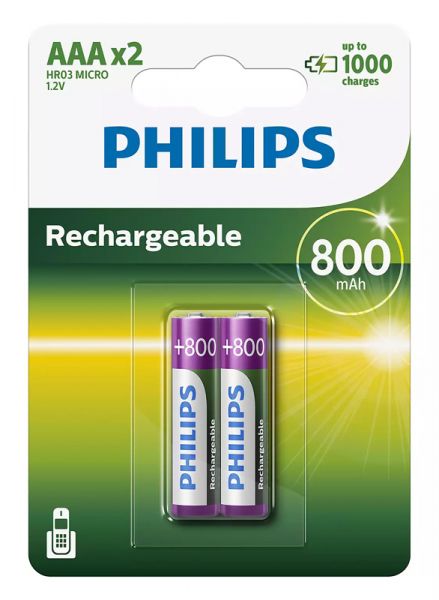 PHILIPS επαναφορτιζόμενη μπαταρία R03B2A80 800mAh, AAA HR03 Micro, 2τμχ