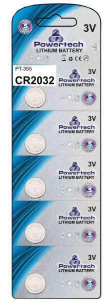 POWERTECH Μπαταρία λιθίου CR2032, 3V, 5τμχ