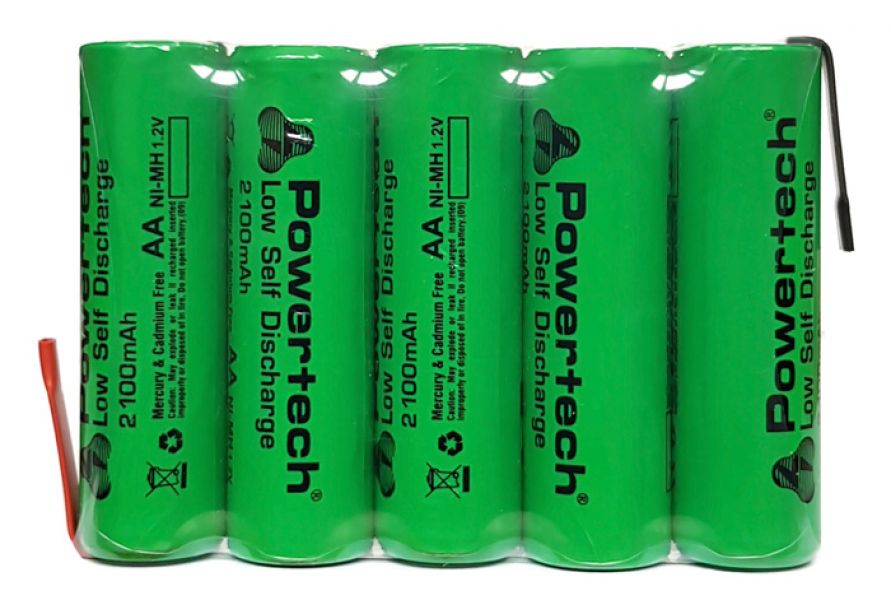 Σετ επαναφορτιζόμενων μπαταριών τύπου Ni-Mh AA (HR6), έτοιμες για χρήση σε συσκευές που απαιτούν 5 ενωμένες μπαταρίες.