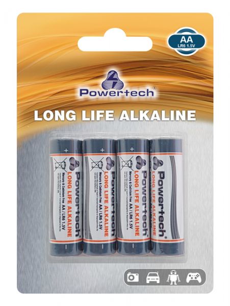 POWERTECH Long Life Αλκαλικές μπαταρίες PT-943, AA LR6 1.5V, 4τμχ