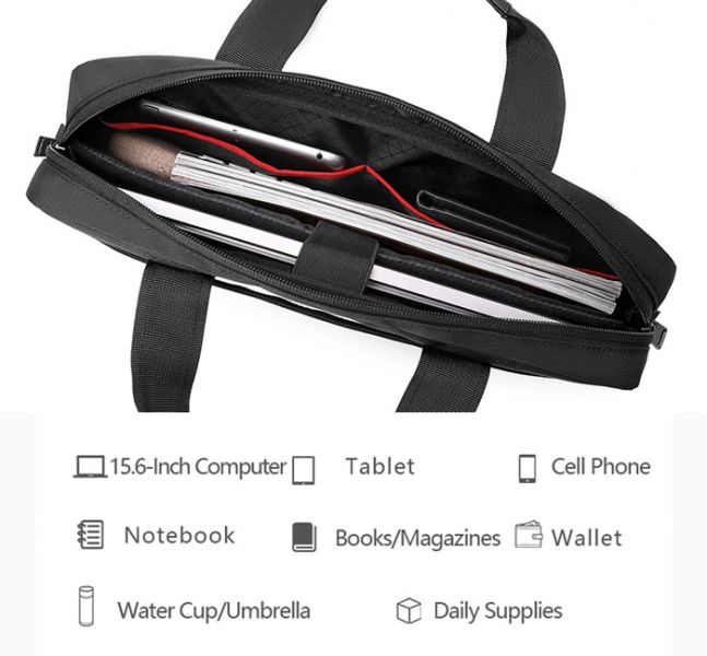 GOLDEN WOLF τσάντα ώμου GW00012, με θήκη laptop 15.6", 12L, μαύρη