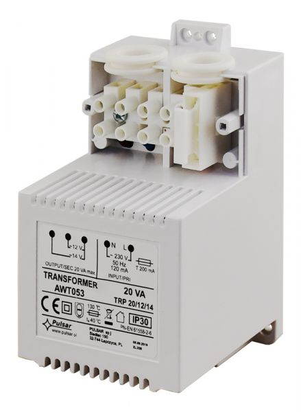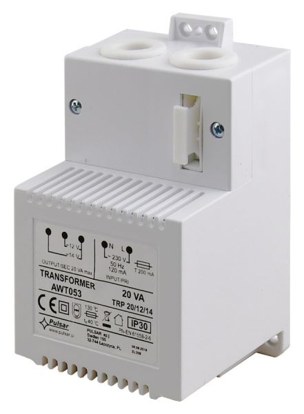 PULSAR μετασχηματιστής AWT053, TRP 20VA/12V/14V, λευκός