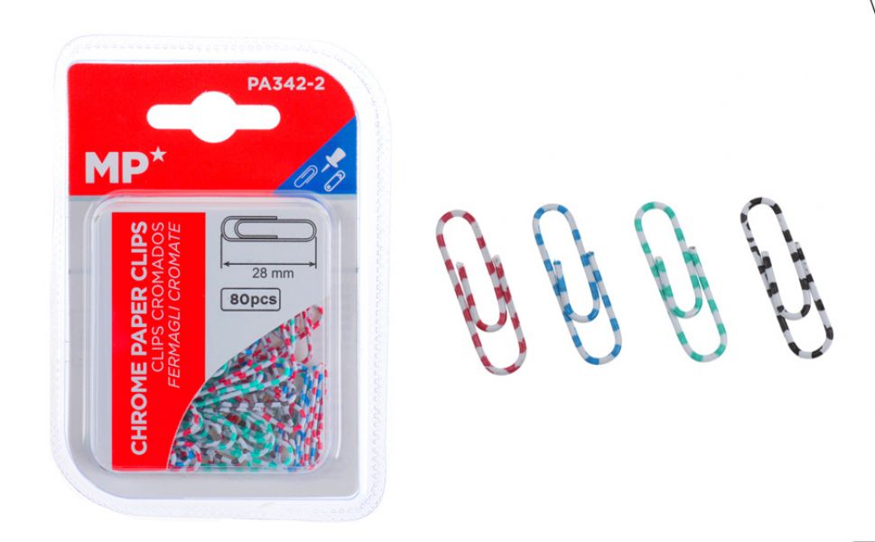 MP πλαστικοποιημένοι συνδετήρες PA342-2, 28mm, 80τμχ, χρωματιστοί