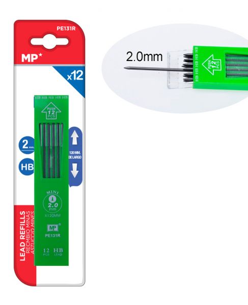 MP ανταλλακτικές μύτες για μηχανικό μολύβι PE131R, ΗΒ, 2mm, 12τμχ
