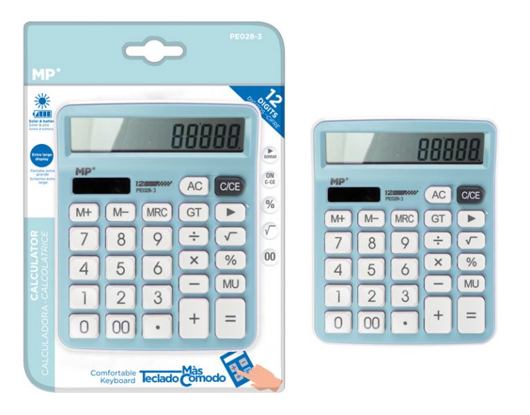 MP αριθμομηχανή PE028, ηλιακό & μπαταρίες, 12 ψηφία, γαλάζια