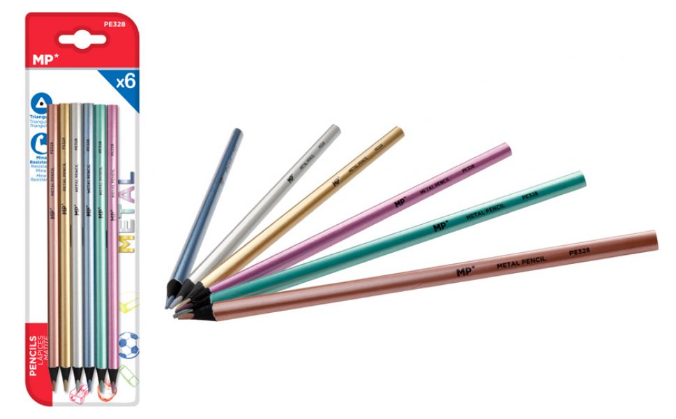 MP χρωματιστές ξυλομπογιές PE328, τρίγωνες, μεταλλικό χρώμα, 6τμχ - Office Supplies