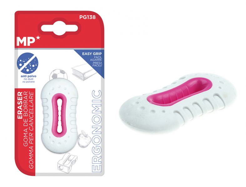 MP γόμα PG138 με εργονομική λαβή, 65 x 33 x 12mm, λευκή-ροζ